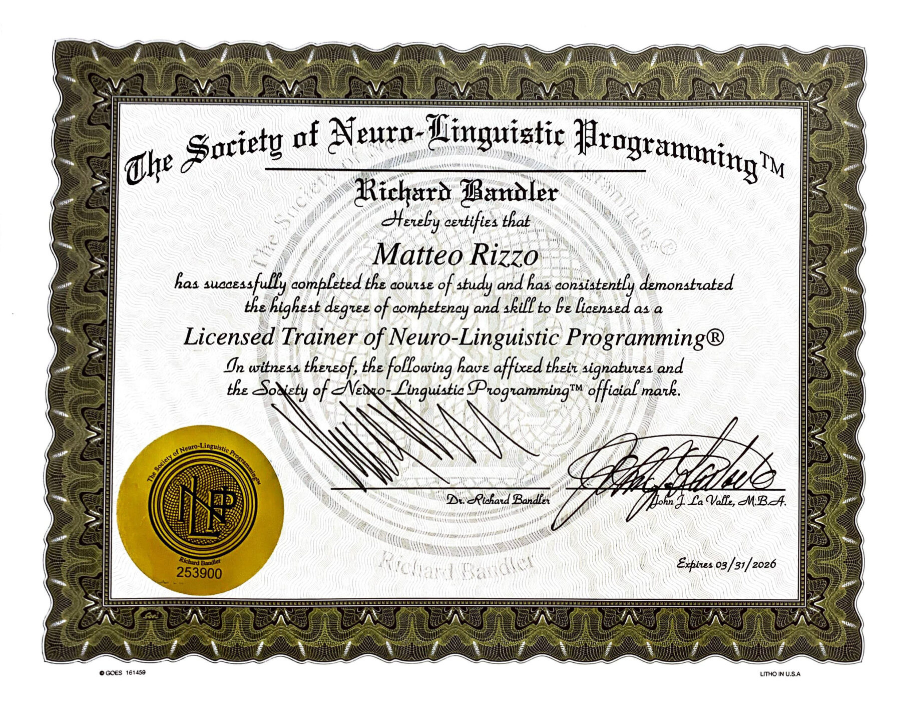 Matteo Rizzo è tra i partecipanti di un corso: prima diventa allievo e poi trainer della scuola di formazione, conseguendo la Certificazione di NLP Trainer e NLP Coach della Society of Nlp di Richard Bandler. Le esperienze come Resp. Commerciale e Project Manager in un’azienda di automazione completano il suo bagaglio di competenze.